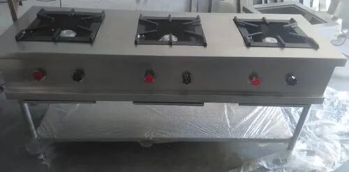 Stainless Steel Three Burner Range, Packaging Type : Silver