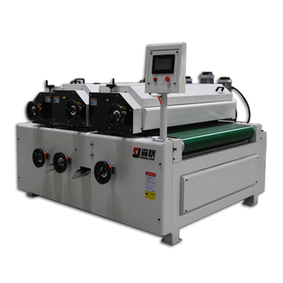 this machine combines roller coating and putty filling, it applies the single rubber roller and stainless steel roller to cover the liquid paint(usually primer) on board circularly which without any paint waste and environmentally friendly. And it uses the putty filling structure with heavy stainless steel roller to press putty into the pores on board. This machine is useful for saving the space and investment, but it will increase the process steps.