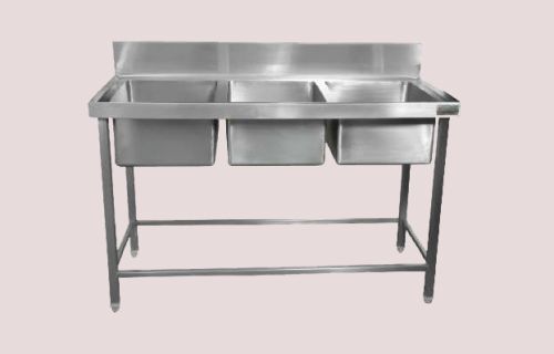 We are a prominent manufacturer of ThreeSink Unit. It is fabricated from 304 (Food Graded Stainless Steel) which is non corrosive & is sturdy enough to hold on high pressure. Size fabricated as per clients requirement. Â