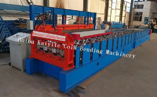 Contact SupplierThree Waves Steel Floor Decker Roll Forming Machine The rollers have been polished and heat treated which can make it form smooth and will not mark the panel sheet . Our design of the three waves steel floor decker roll forming machine is customized and optimized by computer .It can save plenty of temporary mold and concrete , so that reduce the roof weight. In a word , it is economic and save investment surely . Decoiling the sheet→Sheet guiding→Roll forming→Measure length→Cutting the panel→Panels to product stand Minimal maintenance high efficiency reliable working low energy consumption Durable Technical Technical parameters: Material Specification : colored steel sheet , galvanized steel sheet. Thickness of coil sheet :0.8-1.2mm Forming speed : 10-15 meter min Hydraulic station power : 15kw Main motor power : 5.5kw Diameter of Shaft : 90mm Voltage : 380V 3phases 50Hz or at buyers requirement Controlling system : PLC In order to help you know our machine much better. The following is the detailed pictures of the machine Hydraulic cutting system : it is fully automatic and easy to operate . Forming rollers Specification: 45# steel, CNC Lathes, heat treated Feature: hard chrome plating, 0.05 mm Guide device It is used to control the width and position of the steel sheet. The sheet is guided into the machine with correct position, to make sure the panel is neat and parallel. Main frame specification: 350 H steel.