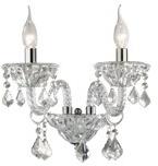 Hand made blown glass chandelier with chrome details. Crystal pendants composed of octagons and drops