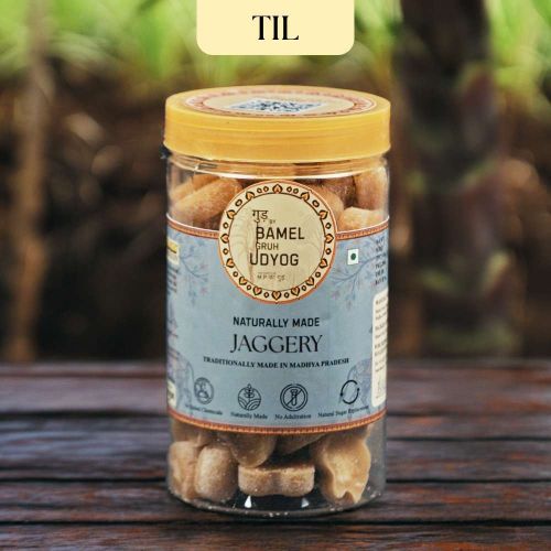 Contact SupplierIndulge in the goodness of our Naturally Made Til Jaggery/गुड़ 5gm Cubes, a perfect fusion of natural sweetness and the rich, earthy taste of sesame seeds (til). Carefully crafted at Bamel Gruh Udyog, this unique jaggery variant combines the traditional benefits of pure jaggery with the nutritional power of til, offering a wholesome treat that’s both delicious and nutritious. Each 5gm cube provides an ideal portion, making it a convenient and healthy choice for those seeking an all-natural sugar alternative. Made from high-quality sugarcane juice, our Til Jaggery/गुड़ is produced using traditional methods, ensuring that it remains free from chemicals, artificial colors, or preservatives. The addition of sesame seeds not only enhances the flavor but also boosts the health benefits of this jaggery. Til is known for its high calcium content, which promotes bone health, as well as its rich source of antioxidants and healthy fats that support overall well-being. Naturally Made Til Jaggery/गुड़ is packed with essential minerals like calcium, magnesium, potassium, and zinc, which contribute to strengthening the immune system, improving metabolism, and boosting energy levels. Unlike refined sugar, this jaggery is processed slowly by the body, providing sustained energy without causing sudden sugar spikes. It is especially beneficial for those looking to maintain a balanced diet while enjoying the natural sweetness of jaggery. Perfect for both children and adults, the 5gm cubes make it easy to enjoy Til Jaggery/गुड़ as a post-meal treat, a healthy snack, or as a flavorful addition to beverages such as tea, milk, or smoothies. This 700gm pack ensures you always have a nutritious and tasty option on hand to replace white sugar in your daily routine. 100% Chemical Free No Added Colors No Artificial Sweetener 100% Natural Sugar Substitute Natural Delicious Sweetener Manufactured Traditionally
