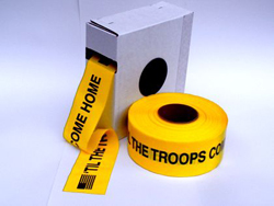 Convenient 3” x 1000’ rolls provide yellow ribbon for hundreds of applications to support our troops. How you use the printed yellow ribbon to support our troops is limited only by your imagination: