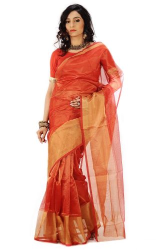 Forget the horror of having to wear heavy weight sarees to ethnic festivities. This party wear saree in a blend of tissue and kota silk is so sheer, so light that your 8 year old daughter could carry it around with ease. And with this you could still look 100% desi. After all, we believe in crossing all hurdles to ‘dress up desi’. Style tip: when there’s so much of gold, you need to tone it down with some matte bronze, whether in the form of jewellery or an ornate clutch. model : aa005 price : 3595 availability : available weight : 0.70 kg quantity