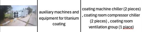This equipment set includes essential auxiliary machines for titanium coating operations. It comprises:•2 Chiller Units for maintaining optimal temperature during coating•1 Compressor for coating room pressure regulation•1 Ventilation Group for effective air circulation and filtration These machines ensure a stable and clean environment, enhancing coating quality and machine longevity. Ideal for professional titanium coating production lines.