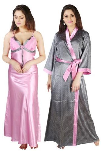 Naughty Women's Nighty with Robe; Length- 56"; Bust- 44"; Satin Fabric and Cover up with polka dots; Made of Pure Satin Fabric with excellent finish, inner sleeveless.