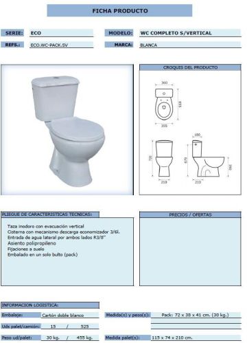 We are offering toilet commode. This set comprisies of sink + toilet ready to working. " made in spain " minimun oder: 250 set ( 1x40ft container ) price: euro 72 per set ( sink + toilet