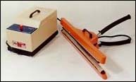 Portable tong sealing unit can be taken to the object to be sealed. Sealing possible at difficult angles. Provision for belt; to suspend from shoulder or ceiling. Ideal for sealing heavy plastic bags, mattresses, machinery, etc. Adjustable electronic timer. Visual indication during sealing. Audio indication at the end of sealing.