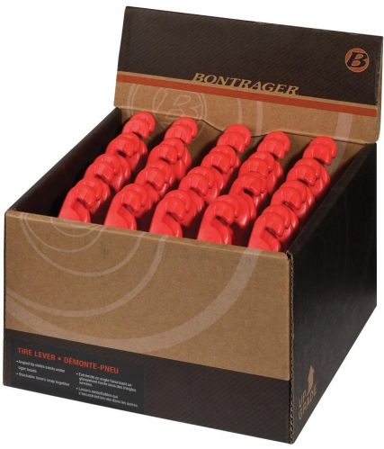 TOOL BONTRAGER TIRE LEVER SET Take some of the frustration out of flat repair with a pair of anatomically shaped, robust tire levers from Bontrager. Features Angled tip slides easily under tight beads Safe for Tubeless tires Stackable levers snap together for storage in saddle bags Longer handle provides plenty of leverage Available as single sets or in a 20-count bulk display