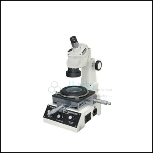 Equipped with micrometer head. Rotary measuring stage dia 130mm is mounted on the table.