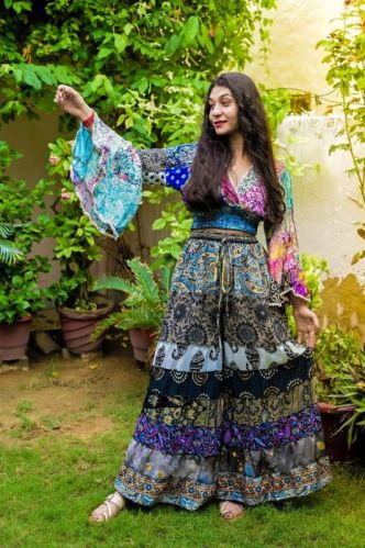 fabric - New Silk Patch work long sleeve top patch work full frill trousers