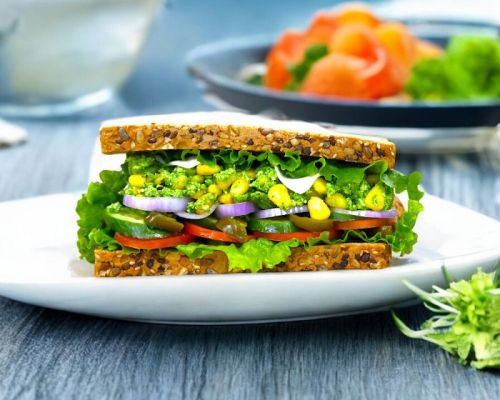 Lohri special combination of nonveg sandwich- preparation with multi-grain bread, filled with fresh veggies lettuce, cucumber, tomato, and onion layered with tossed juicy chicken, bhuna sarson da saag and relished with low fat sauces and cheese slices.