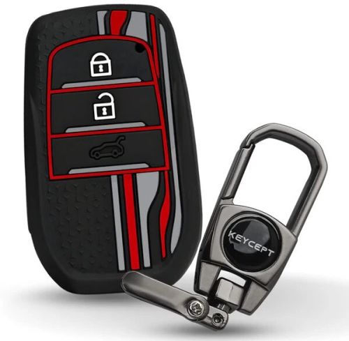 Model Compatibility: Toyota Innova, Crysta, Hycross & Fortuner 3 Button Smart Key with Keychain. Flexible Material: High quality silicone material feels soft and smooth to the touch and fits snugly on car keys. Light & Durable: Extremely light and durable to use on car key and provides non-slip grip. Full protection: Protect your auto keys from damage, marks, dust and scratches. Note: Before buying please make sure your key shape is same as the key in our photo. This is not a universal key cover. If you are not sure, please contact us before buying.