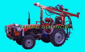 tst-t30b tractor drilling rig is a new kind of prospecting drilling rig. Take-off power from tractor engine to drive drilling rig working. This tractor drilling rig overcomes the deficiency of crawler rig’s bulkiness and truck rig’s poor adaptability. So it has the advantages of flexibility and adaptability to complicate stratum. Equiped with air compressor group or mud pump with hydraulic driving, the rig can carry out air drilling, hammer drilling, mud drilling and auger drilling many function. With high cost performance, the tractor rig provide complete methods when drilling at field.