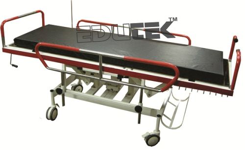 Patient Transfer Trolleys:(213L x 56W x 81H cms) Frame work of CRC tubes mounted on 15cms castors. Removable stretcher top with chrome plated handle. Pre-treated and Epoxy powder coated finish without matress.