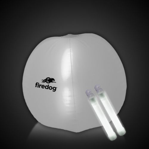 Contact SupplierIf you're in the market for a product that will inflate your brand ego, this translucent white 24" inflatable beach ball with glow will do the trick! This illuminating item is fun and easy to use, and it is ideal for beach parties, sporting events, concerts, festivals and other dark or nighttime events. It comes with 2 colored 6" light sticks, which insert into the center of the ball for easy maneuvering. Please note that glow items, by nature, are one-time use only. Customize with an imprint of your company name and logo for maximum brand exposure on a sought-after giveaway.