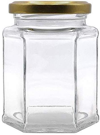 250ml Hexagonal Glass Jar, For Spices, Nuts, Pickle, Jam, Spreads, Honey, Ghee, Feature : Crack Proof