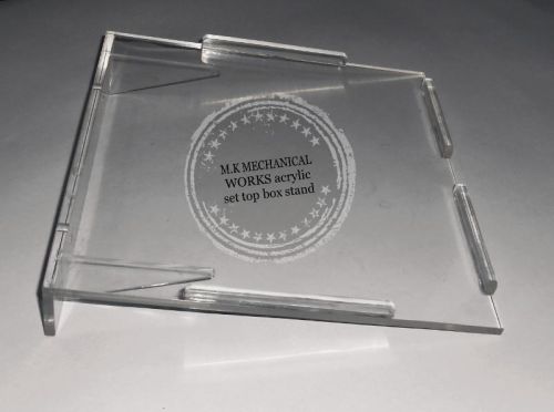 this is acrylic set top box stand. it is made of acrylic material. this product is home , office decorated items. available in different size of product. this is wall mouned items.
