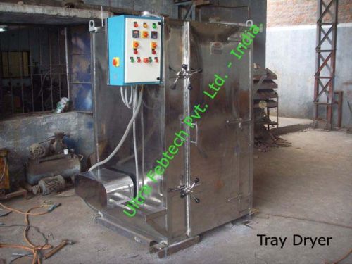 Contact SupplierWe Ultra Febtech - An ISO 9001:2008 Certified Company Engaged in Manufacturing of tray dryer for chemicals plants machinery .This is a batch type Tray dryer suitable for small quantities wet material. It is either in MS or SS. Trays of SS or aluminum ranging from 12– 392 can be supplied according to customer’s requirement. The same is either provided with steam or electrical heating arrangement. Proper insulation is given to minimize heat losses. It has also auto start and cut off facility to maintain optimum temperature in the chamber. It has two to four fans according to trays capacity.