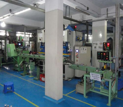 input to this production line is drawn cups with centre hole as per finished size. The output is taper cage with deformation at the base as per customer requirement.