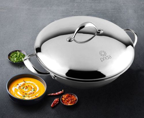 Contact Supplierprida DomĀ Triply Stainless Steel Kadai with Stainless Steel Lid 3.4 litres Capacity (26 cm Diameter) | 3.4 L Triply Stainless Steel Kadai - Silver (Induction and Gas Stove Friendly)