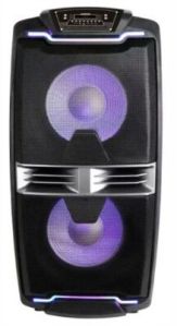 Contact SupplierMODEL NO. JM-DC-1019 2×10″speaker Power 12V 60W Battery:7000MAH Function USB/BT/FM/ SD/Volume/Bass/Treble/MicVolume/Echo/Aux in/Mic in/5 knobs Accessory:x1 remote control x2 wirelessmic x1 charger