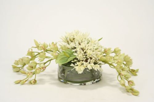 16917# - Waterlook (R) Tropical Orchids, Agapanthus, Antheriums in Low Glass Bowl More Information Container Material Glass Dominant Color Celery Dominant Color Family Greens Shipping Weight 12 Ships