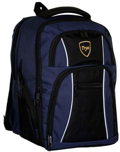 Tryo laptop backpack hb2028 classy • color: black with white strip • material: polyester • dimension (cm) : 32*26*44 cm (l*w*h) • number of compartments: 2 compartments, 5 pockets, 2 water bottle holder. 1.main zip compartment to keep laptop safe, 2.to keep lunch box or your documents, 3.mobile phone headphone etc… 4.documents etc.. • color of bag: black with tryo logo at the front • gender : unisex usable • disclaimer: product color may slightly vary due to photographic lighting sources or your monitor settings