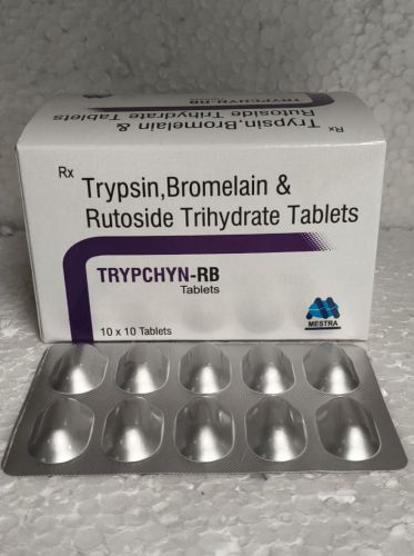 Contact SupplierWe offer Trypsin RB Trypsin Bromelain Rutoside Trihydrate Tablets by Trypchyn in convenient tablet form for digestive support. Each tablet contains Trypsin BP 96 mg, Bromelain 180mg, and Rutoside Trihydrate BP 200 mg. Packaged in a bottle, each box contains 10x10 tablets with a shelf life of 2 years. Ideal for manufacturers and exporters, this product is designed to provide effective digestive support in a user-friendly format.
