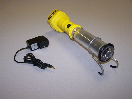Four 1-watt, 120 degree angle, high output LEDs provide a bright, wide light pattern One lensed 1-watt LED on the end provides flashlight feature Side LED diffuser provides nice even light pattern 5000k LED color is preferred by users (bright white color not yellow or purple) Model comes with charger and one battery pack Lithium Polymer (LiPO) Battery Pack will operate the light for 5.5 hours Included 120 - 240 Volt charger will charge the battery in 4 hours