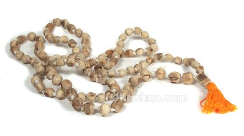 These are used for japa, or mantra meditation. The set consists of 108 wooden beads and one head bead. They are made of sacred Tulasi wood and are suggested for intermediate or regular practitioners. This large set would be most comfortable for people with large hands or those whose health makes it difficult to handle small objects. Traditionally, they are kept and used in a bead bag.