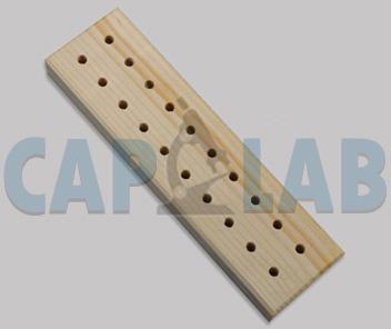 Made of hardwood. Size 30x9x5 cm with two rows of 10 holes each for standing tuning forks. Polished and lacquered. (Without Forks)