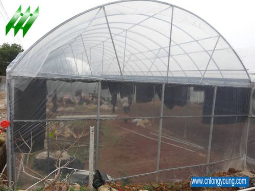 We offer tunnel greenhouse. 1, hot galvanized steel pipes for main structure, anti rust for 10 to 15 years 2, film available: 80/100/120/150/180/200 micron thickness 3. Natural ventilation: manual side or roof ventilation 4, irrigation for optional: drip, fog and mist irrigation 5, other options: shade system, cooling system 6, 6/7/8/9/10m width for chioce, 18m to 60m long ,3.5m zenithal height