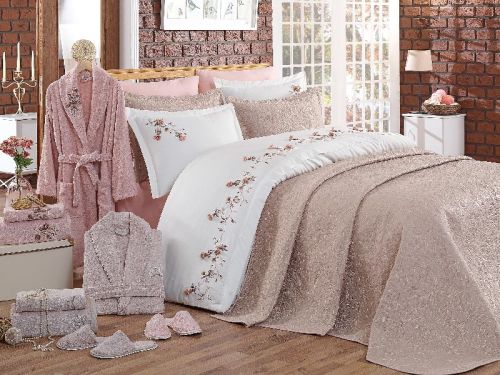 within our constitution we have home texile products like: ranforce duvet cover, cotton duvet cover, cotton satin duvet cover, embroidered duvet cover, 3d printed pattern duvet cover, organic cotton duvet cover, bed sheet, pillow, pillow case, towel, bahtrobes, bathrobes family set, cotton fabric, satin fabric, quilt, pesthemal and other home textile products. Turkish home textile manufacturers, made in turkey, yalcin global textile company.