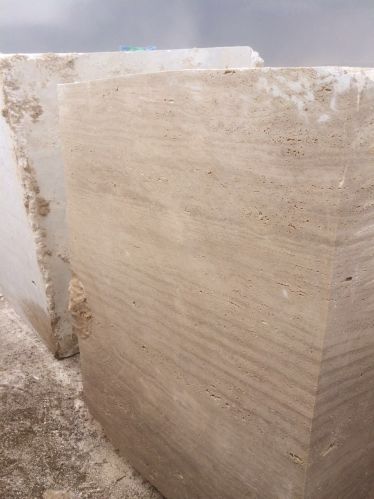 our travertine blocks are with good quality. You can cut them up 1 cm of thickness without any problem . Our quarry is at Karaman Turkey . We wish to invite you for visiting our quarry . The minimum quantity for export is for 4 - 5 containers , each block is between 20 - 25 tons or a little less or more . The price offer is FOB Turkish Ports