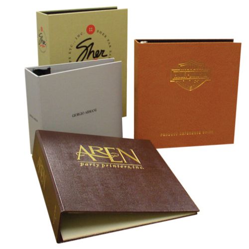 Turned Edge Binders deliver a rich, high-end look. Add to that the durability of gluing the material around rigid board and these binders are a lasting value. For 11" x 8-12" sheet size Square corners with exposed rivets Available in Book Cloth, Lizard Grain, Metallic Brushed Grain, and Cork Color silkscreening, or foilstamping* (4" x 6" area max) Basic black or white liner - matching liner to outside material is available for an extra charge *Stamping Die $100 (G)