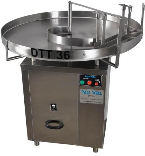 stainless steel scrambler & un scrambler, which is familiar as turn table. This is built on ms square frame, solid guide rail & reduction gear box for jerk less & noiseless performance. Turntable is useful to ensure total synchronization, uniform flow of container and to take a turn at 90 degree to suit different machine and purpose in automatic liquid line.