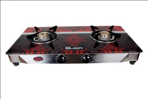 Quba Gas stove. 2Years full warranty on gas stove including glass. Available in stainless steel black powder coated body .Available in manualimported pulse auto ignition, Jumbo burner &ARCcurve glass,3 burner glassis770x380. 2 burner glass size is700x360.4burner glass size is 635x500675x500(ARCCurve. Heavy pan support. Strong frame of 07mm .most of the models are with 8mm glass. Heavy duty brass burners.