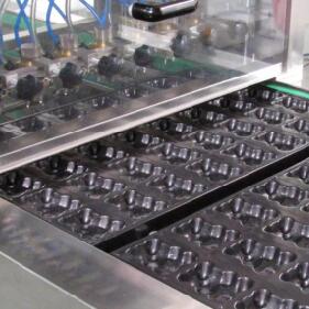 This oil sprayer & multi-point depositor & depositor 3 in 1 machine is designed for making 2 color bear cakes. Firstly automatic oil spraying, then four points depositing chocolate dough for bear palms, lastly deposit dough for the bear body.