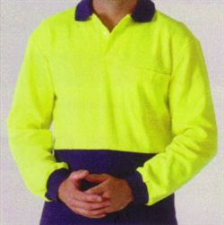 Two Tone Long Sleeve Shirt is 100% polyester Micro Tec fabric wicks moisture away from body, self-fabric collar, topstitching at collar, set-in sleeves, double-needle stitching at sleeves and bottom hem.