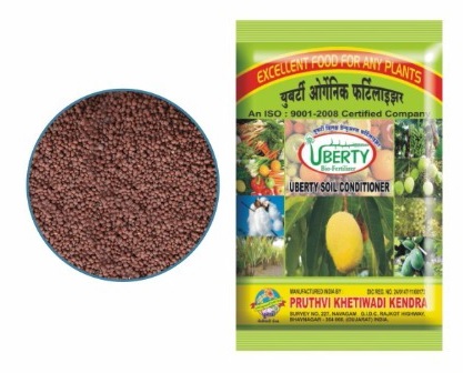 Uberty Deluxe is one kind of soil conditioner and it is useful in growing & gaining weights of fruits & vegetables. It is also useful in remedy the soil damaged due to chemical fertilizer and pesticides. Dose: 25 kg to 30 kg per acre Contents: Dolomite 7% Gaumutra arc 5% Amino acid 3.50% Bone meal 33% Seaweed extract 9% Humic acid 3.50% Wormy wash 4% Bentonite