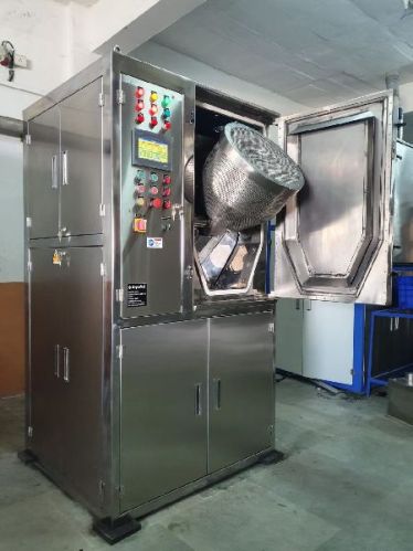 Cryogenic Deflashing machine uses liquid nitrogen to help deflash the part reach low enough temperature where its material becomes brittle. During this process, the drum rotates at defined speed and once the material reaches its brittle stage, deflashing media is bombared onto the parts for effective flash removal.