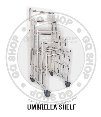 umbrella shelf - made of metal tubing - knockdown type - client specifications and design - available any color - movable.
