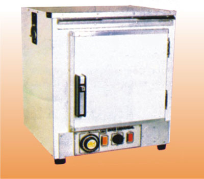 Contact SupplierUNIVERSAL OVEN For heating upto 250° C inside chamber made of thick aluminium and stainless steel sheet. Outside made of Mild steel the gap between the walls being filled with glass wool. Heating elements are placed in ribs at the bottom and sides of chamber for uniform heating. Thermostatic control is provided which gives a temperature fluctuation of not more than + 1 °C ready by an L shape thermometer. The insulated door closed firmly against heat resistant gasket and is provided with a handle with spring latch. Front panel has ONOFF switch, 2 neon indicators and dial for temperature setting. unit provided with 1.5 ml of 3 core cable. Works on 220 - 240 V A.C.