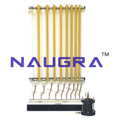 Instead of a set of three glass stand pipes a stand with nine glass tubes of 6mm, 10mm, 20mm, 25mm, 40mm, 50mm, 60mm, 70mm, 75mm, bore tube is provided with over flow arrangement for constant head tests. The remaining tubes are used for falling head test. civil lab equipments manufacturerÂ