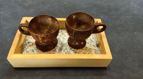Upcycled Coconut Shell Tea Cup and Recycled Tray Set?