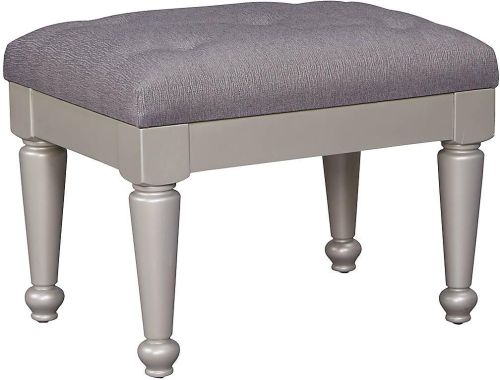 Here's to vanity in the best sense of the word. This upholstered vanity stool allures with the glam befitting silver screen queens. Exquisite frame's metallic tone channels that Hollywood Regency flair you've been dreaming of. So pampering, the plushly cushioned seat with button tufting adds a decadent touch. Series Name: Coralayne Item Name: Upholstered Stool (1CN) Model: B650-01 Dimensions: 23"W x 17"D x 18"H Weight: 19.00LB Material: Wood Products and Other Features: Made of wood Metallic sheen finish Button-tufted polyester upholstery Thickly padded cushioned seat