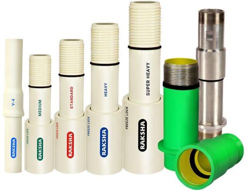 RAKSHA uPVC Column pipes are professionally designed for submersible pump applications. These pipes blends the perfect combination of technology and quality that guarantees a long and hassle-free performance. These pipes are a perfect replacement of galvanized steel pipes used for ground water harvesting. Stringent quality checks are incorporated in every level of production to ensure consistency and compliance with industrial, national and international standards. This Emphasis on quality is the Hall mark of Raksha uPVC Column pipes.