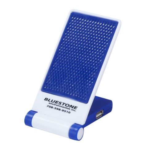 USB cell phone holder. Use it as a USB extension cord, plug your phone or other device into the USB port and use as a cell phone or digital music player stand. It folds up for easy storage.