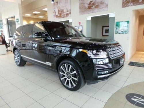 Contact SupplierWe are offering 2014 land rover range rover autobiography lwb. vehicle information *** only 1,200 miles *** total specification! 21” style 5 factory wheels! rear entertainment! meridian 3d sound! front cooler compartment! 4-zone climate control! blindspot monitor! surround camara system w park assist! finished in santorini black with black leather interior and shadow walnut veneers. Woodleather trimmed multi-function steering wheel with paddle shifters. Ebony leather headliner. Extended panoramic roof with power sunblind.